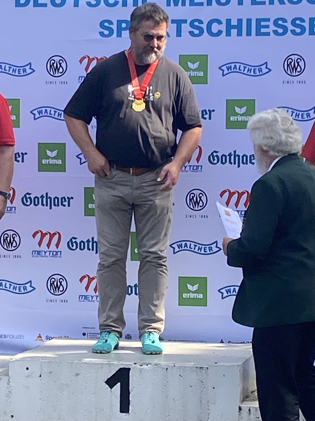 Nach zwei Vizemeistertiteln in den Jahren 2011 und 2019 und einem dritten Platz im Vorjahr holte Wolfgang Riedel seine vierte Medaille auf einer Deutschen Meisterschaft. Mit dem Perkussionsrevolver kam er ringgleich mit dem zweitplatzierten Brandenburger Volker Valentin mit jeweils 137 Ringen auf Rang drei.