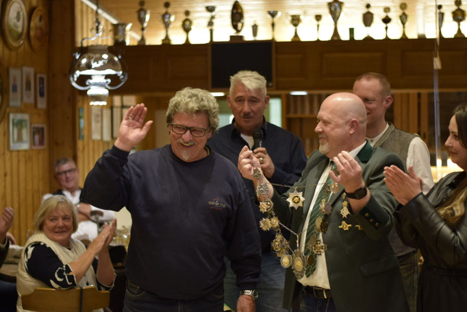 Damit übernimmt Alexander Weiß den Königstitel vom amtierenden Schützenkönig Karl Busalt erneut, da er bereits 20/21 Schützenkönig war.